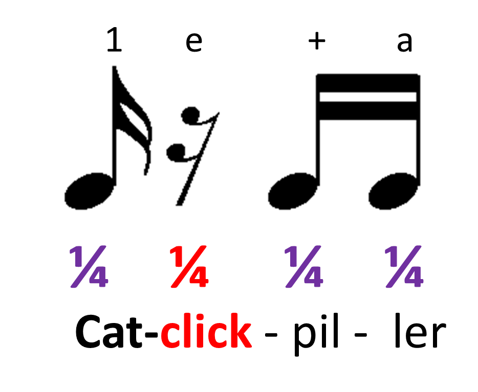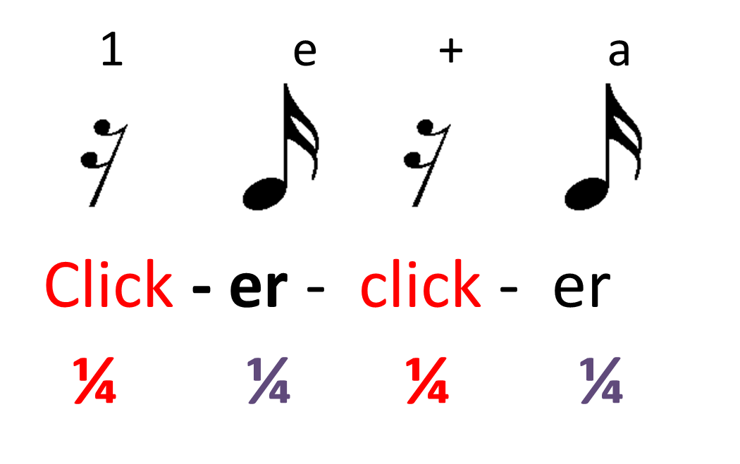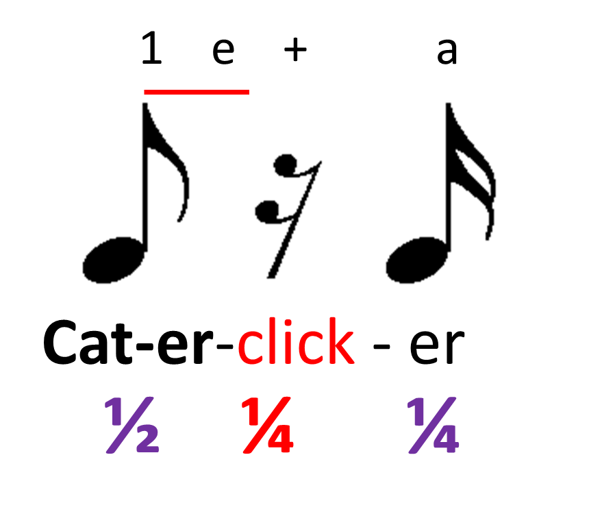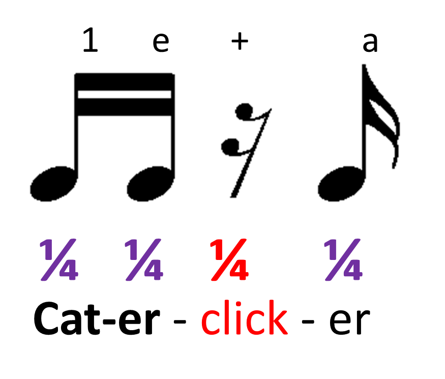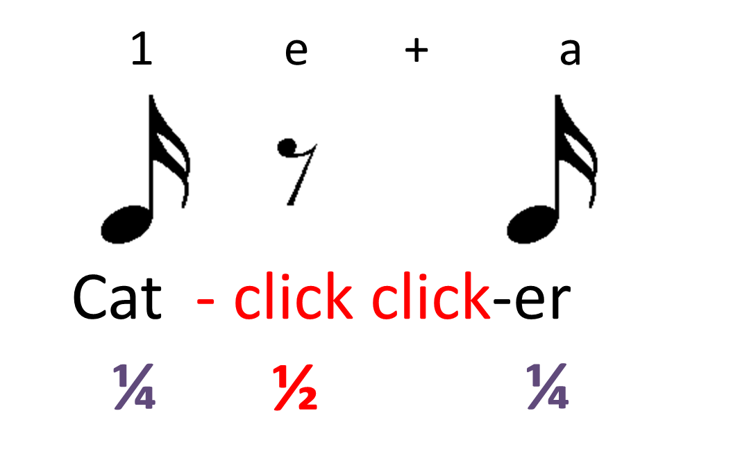 These following rhythms all add up to 1 whole beat and fit into the beat 3 box and beat 4 box.