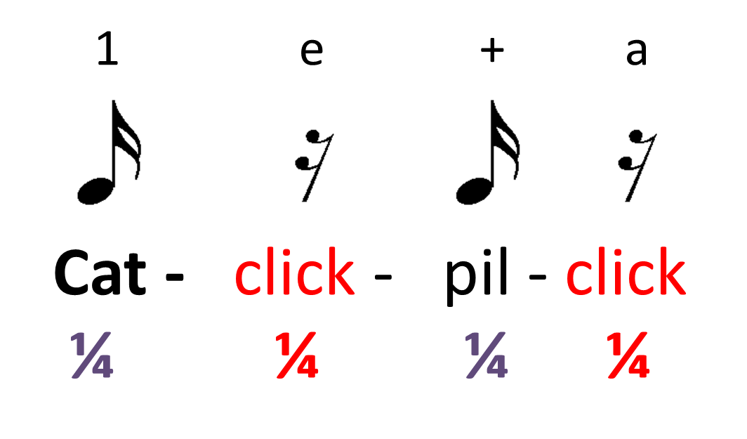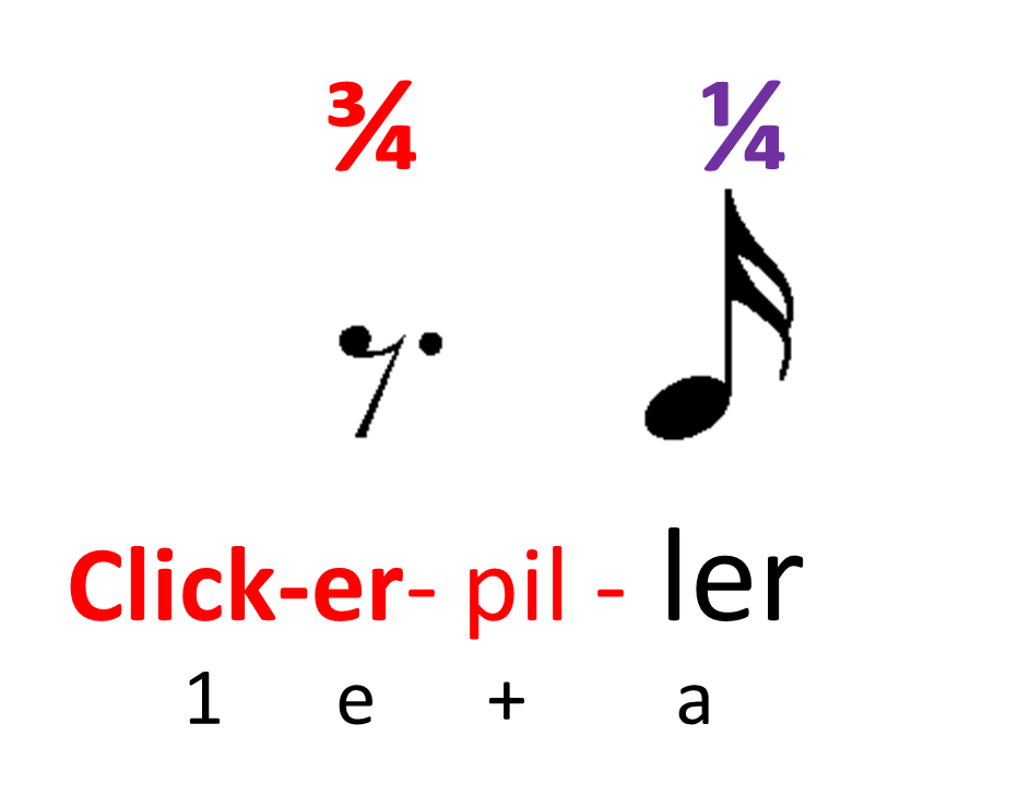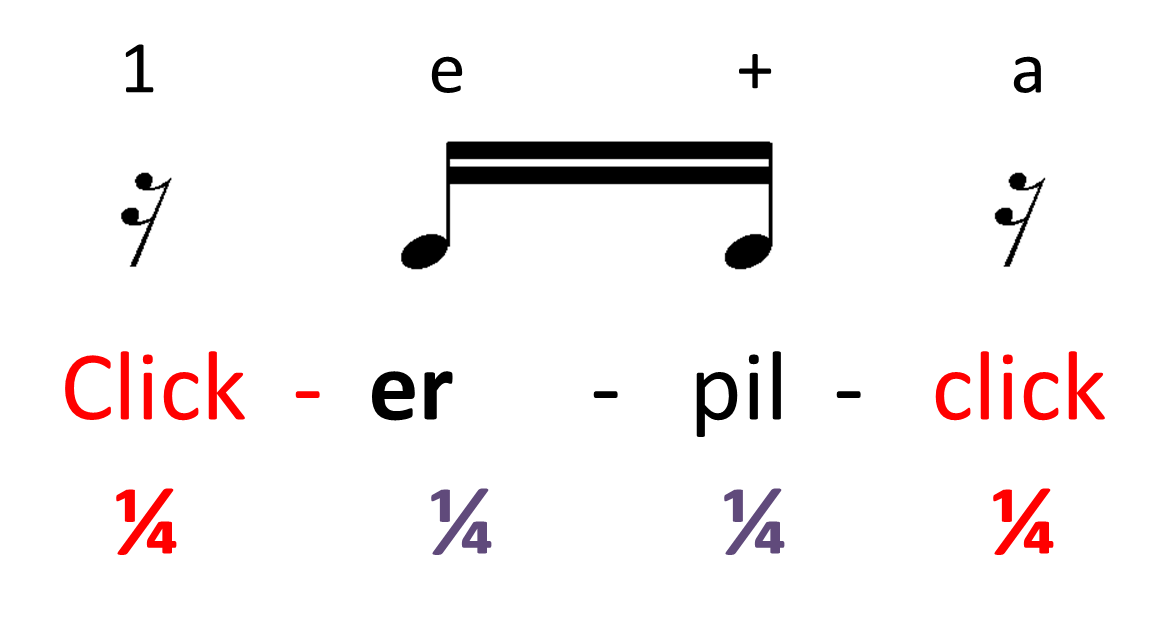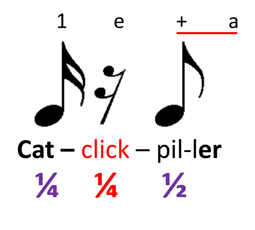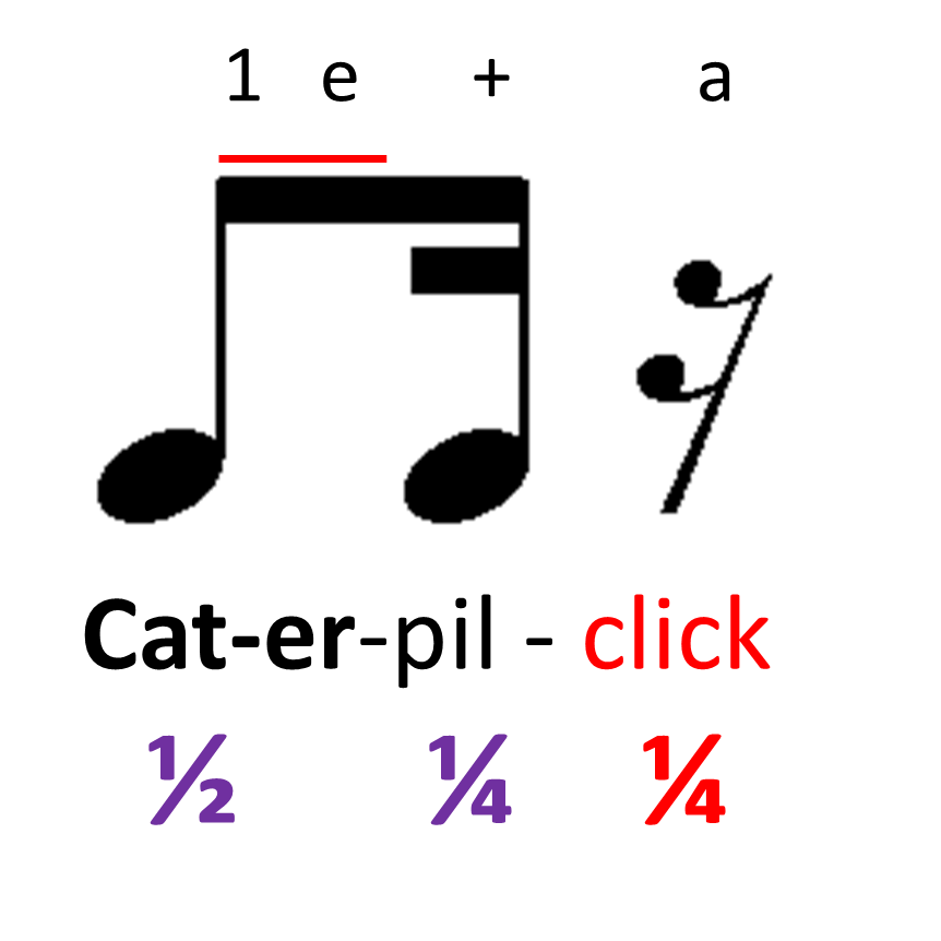 These following rhythms all add up to 1 whole beat and fit into the beat 3 box and beat 4 box.