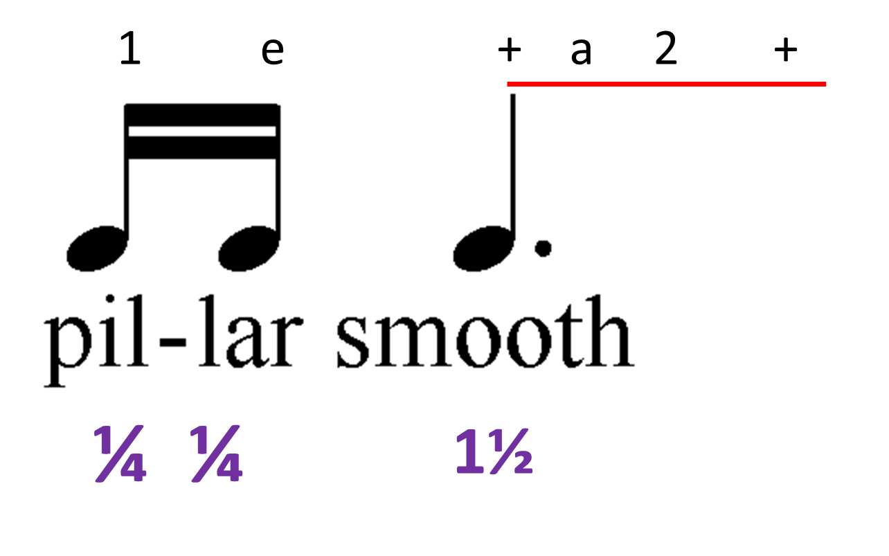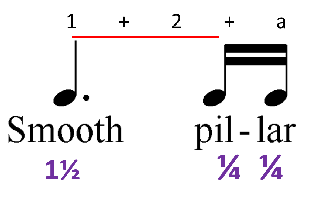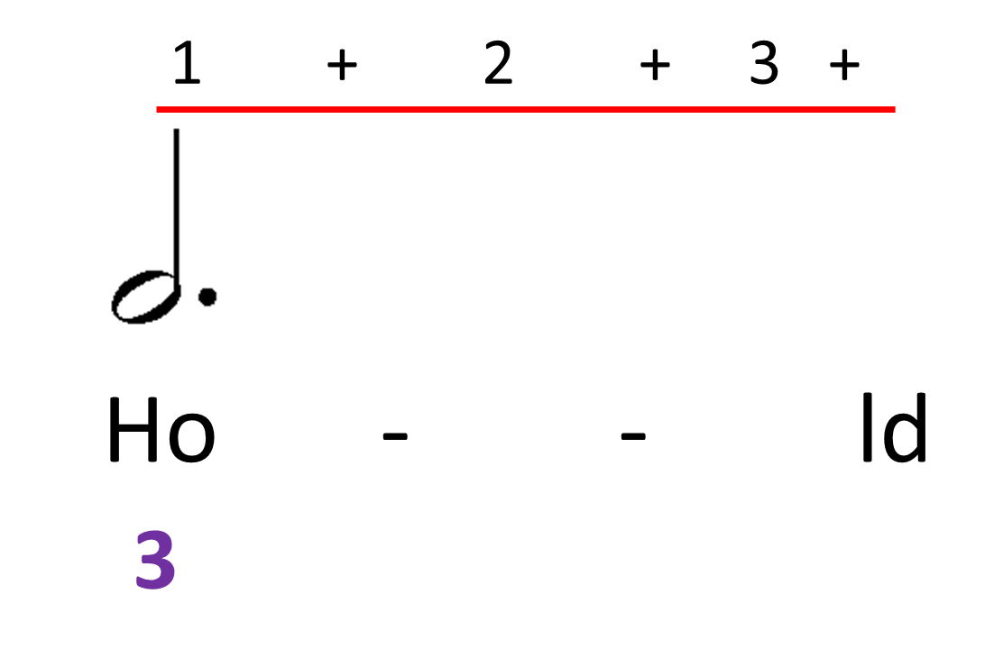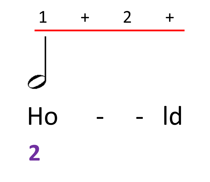 This following rhythm will last for 3 beats = One syllable word = | ![]() |
